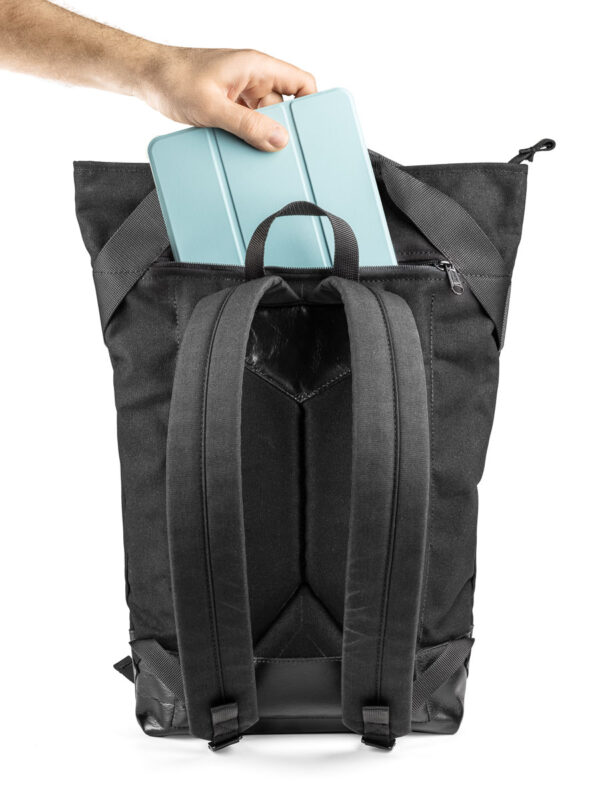 – Water resistant urban backpack from cotton canvas and Italian leather with two handles