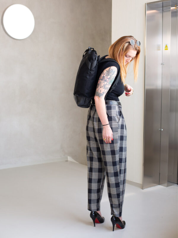 Nimrod is an elegant city water-resistant backpack and an ideal companion for work. It is made from natural materials, cotton canvas and Italian leather. It goes quite well with a pair of tennis shoes as well as a formal jacket. The cotton gets a patina over time just like pair of jeans does. The waterproof lining will keep all your items dry even if you get caught in unexpected rain. The main compartment can hold a 17.3-inch notebook and it closes down easily with the YKK® quality zipper. Nimrod has two handles on the top. The backpack can be quickly transformed into a bag this way. There are three pockets inside the lining to keep your necessities well organized. There is an inconspicuous pocket on top ideal for small and valuable items. It is easy to reach and secure due to the YKK® zipper. It can easily hold a Macbook Air 13'' for example. The bottom is wrapped with high-quality full grain leather. This is quite convenient when setting your bag down. The padded back and padded shoulder straps keep you comfortable throughout the day. The cut and pocket placement are the same for all color combinations. This size is suitable for smaller body types. The whole backpack is completely made in the Czech Republic in our manufacturing space in Prague. Two other models with the two-in-one functionality are the Canvas Bag and the Hanz, both made with handles. Another great option that functions as a work companion is the Haak for men and AYO model for women. A backpack with a similar cut, made from Cordura® is our Hanz backpack.